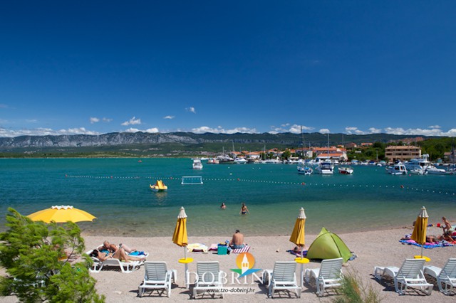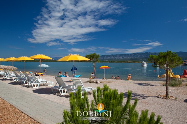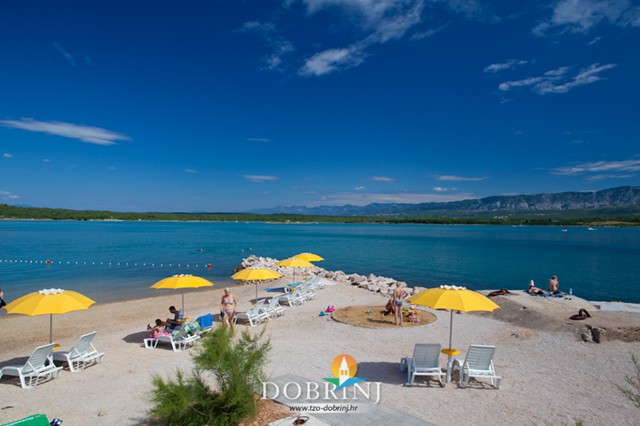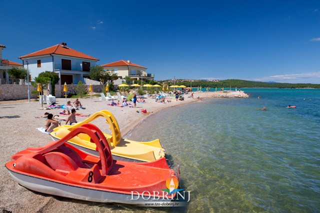 Uređena šljunčana plaža nalazi se nasuprot centra mjesta. Plaža je opremljena tušem, kabinom za presvlačenje, rampom za invalide, igralištem za odbojku, pješčanikom za klince i golom za vaterpolo. Osim toga na plaži možete unajmiti ležaljke, suncobrane i pedaline.